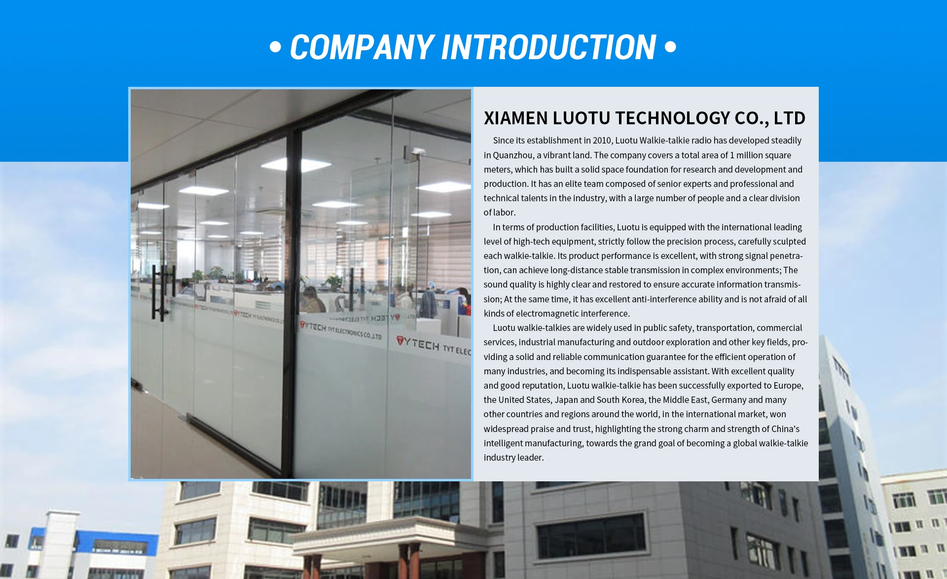 Productos principales:Walkie Talkie, Radio Bidireccional, Intercomunicador Poc, Radio Poc, Walkie Talkie Poc
